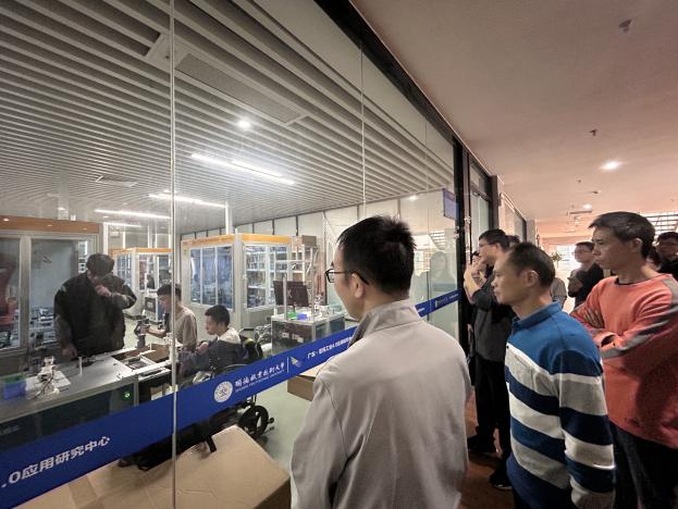 随后,与会人员在智能制造学院范淇元老师的带领讲解下,共同参观了广东亚琛工业4.0应用研究中心的实验室,并开展了现场交流与对接。