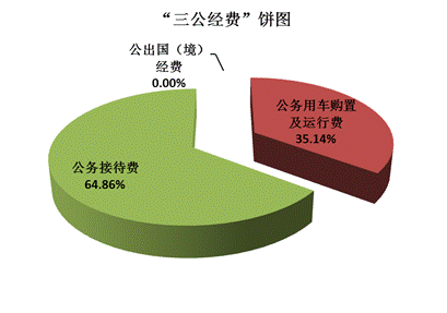 2015年 “三公”经费财政拨款预算合计185.00万元。其中:因公出国(境)经费预算0.00万元,占0.00%;公务用车购置及运行费预算65.00万元(包括:公务用车购置费0.00万元、公务用车运行费65.00万元),占35.14%;公务接待费预算120.00万元,占64.86%。